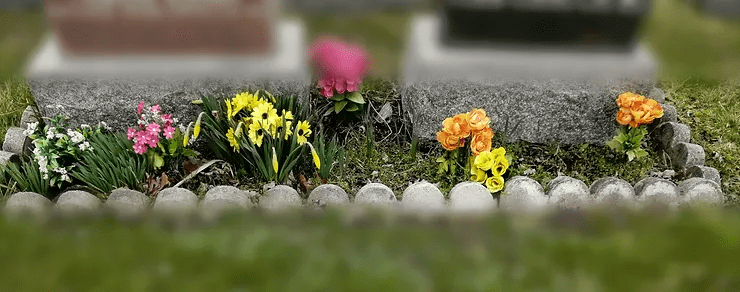 A flowerbed the width of the monument is allowed to be constructed up to 18 inches in front of the monument. It should have a concrete border to separate it from the rest of the lot.